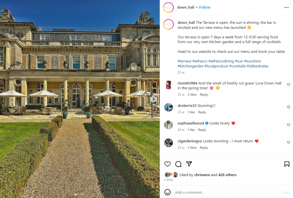 Down Hall Hotel is one of England’s most established country house hotels dating back to 1322. This instagrammable venue is grand and ornate, yet light and airy. It is in a great location! It’s nine miles from Stansted Airport, 40 minutes from central London by train, and close to the M11 and M25.