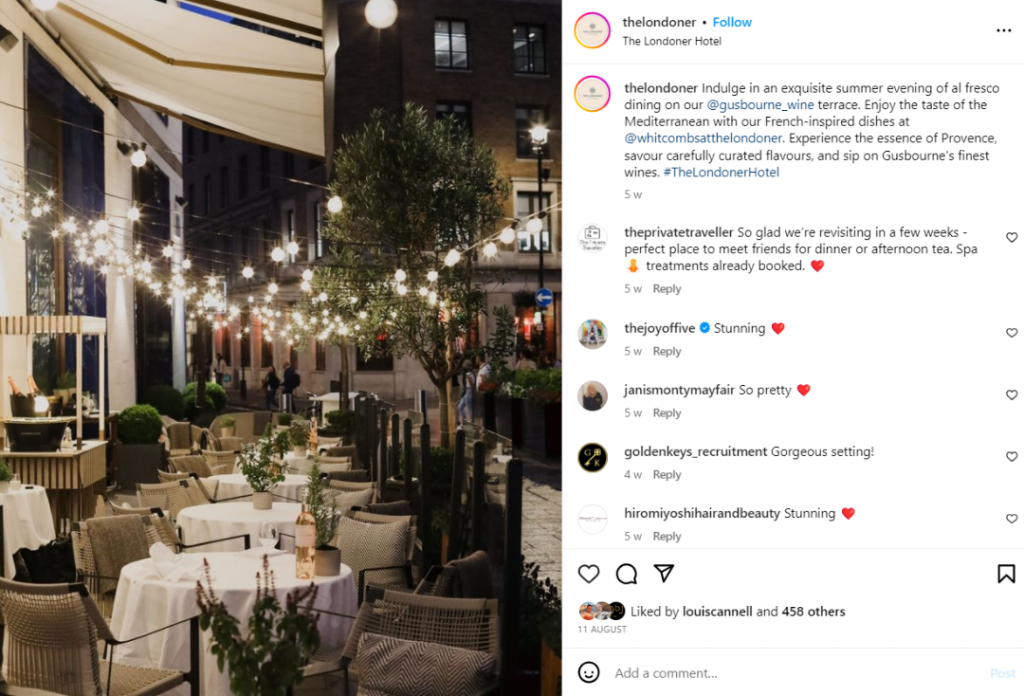 The Londoner has a wide collection of restaurants and bars. They include alfresco dining on the ground floor and a rooftop bar. It boasts a magnificent ballroom, private meeting and events spaces, an urban spa experience and two Odeon Luxe screening theatres.